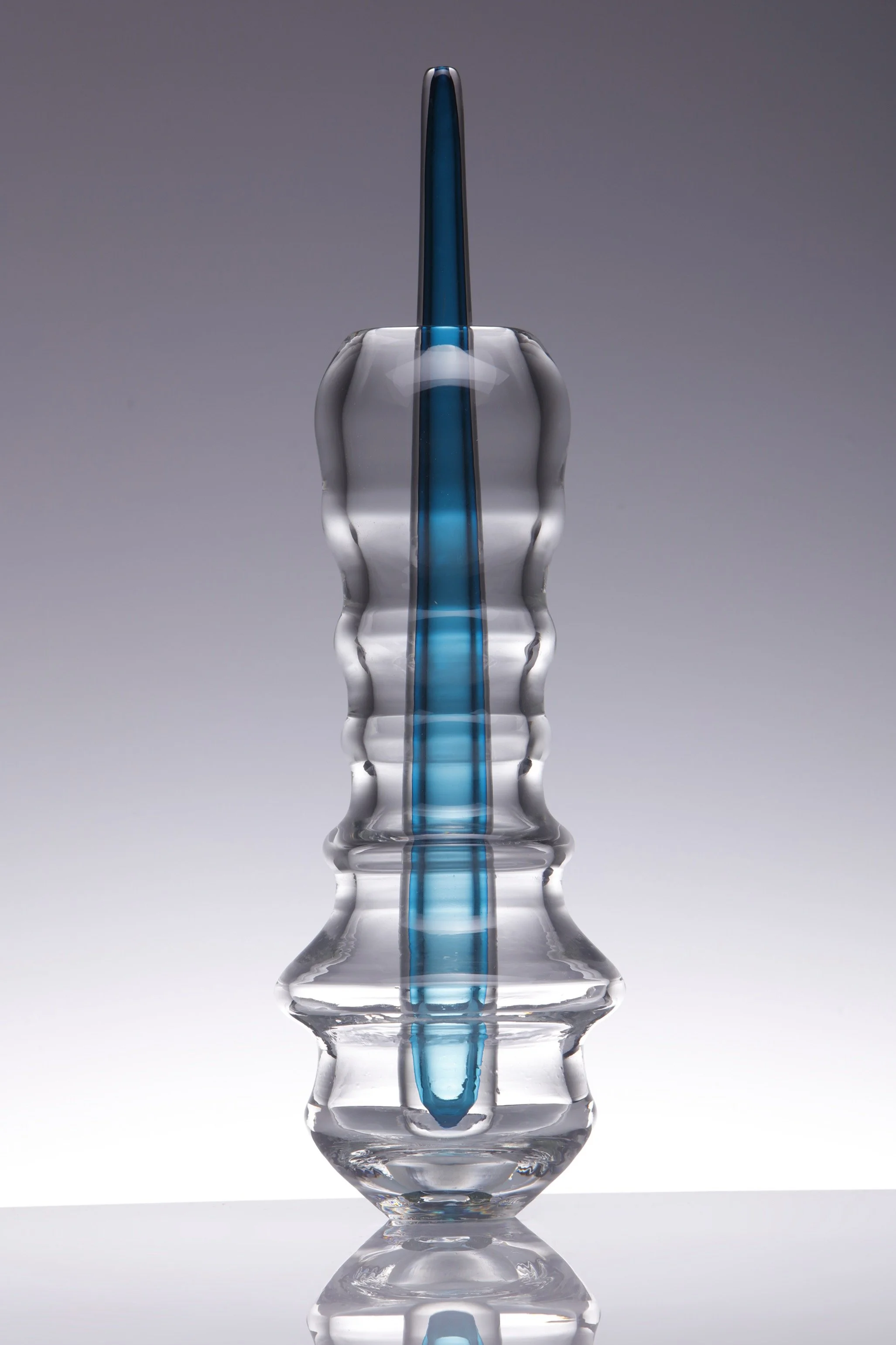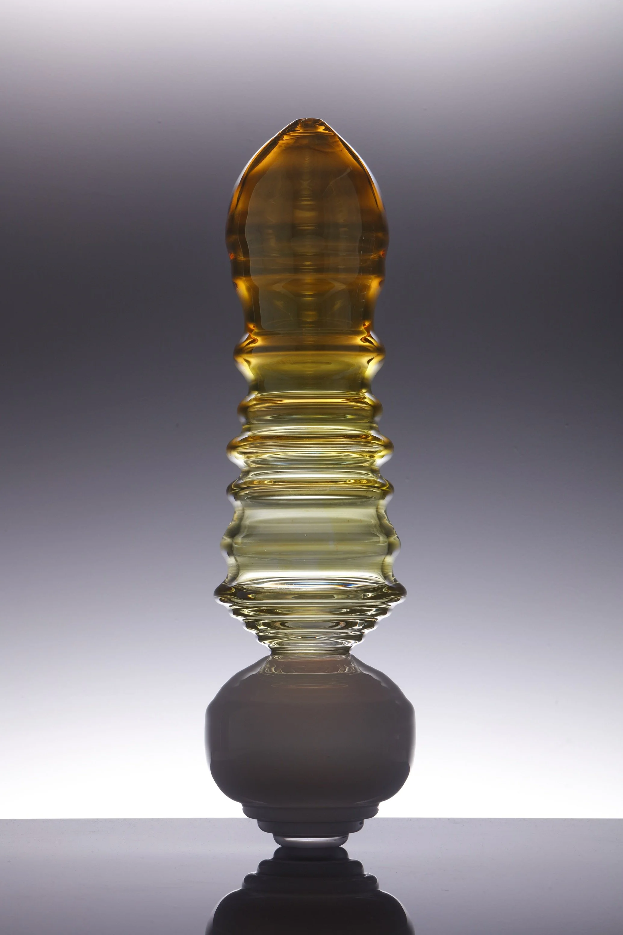 Axle is a family of vessels which combine ancient glass techniques with contemporary innovation, challenging what is possible with the material today. Led by an interest in the complex relationship between the digital and the hand-made form, I primarily use 3D modelling software to develop the designs for my work. These are then transferred into wood with a CNC cutting process to make moulds that can be used in combination with traditional glass blowing techniques to create multiple vessels.